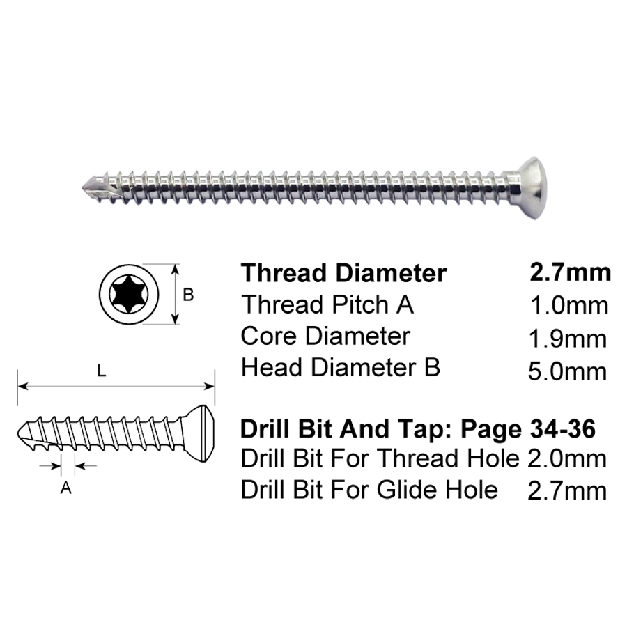 2.7mm Cortex Self Tapping Screws